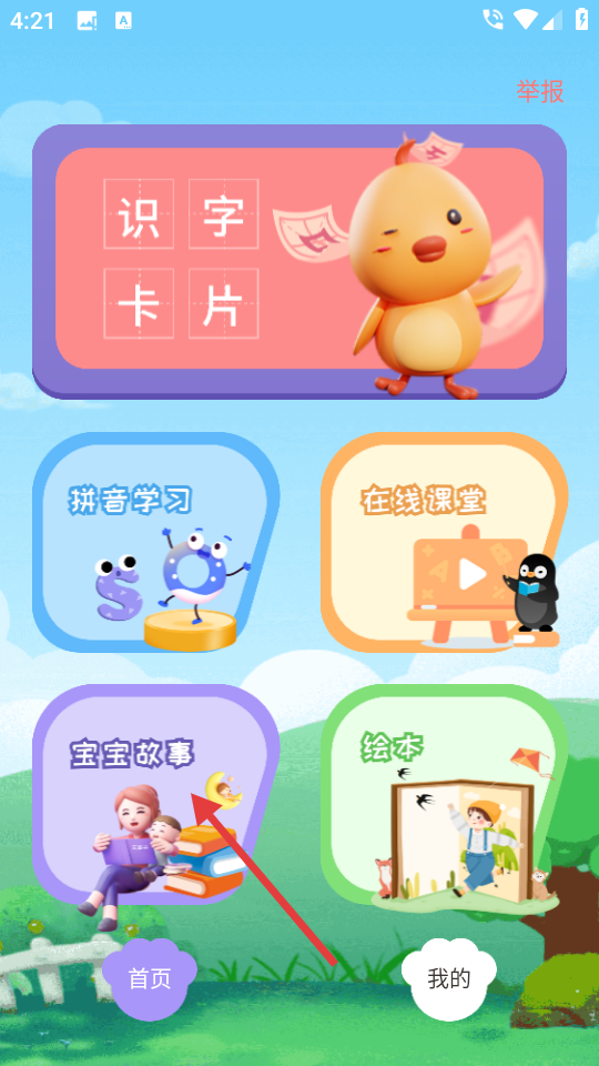 2、在主界面,点击【宝宝故事】选项,进入宝宝故事列表页面。