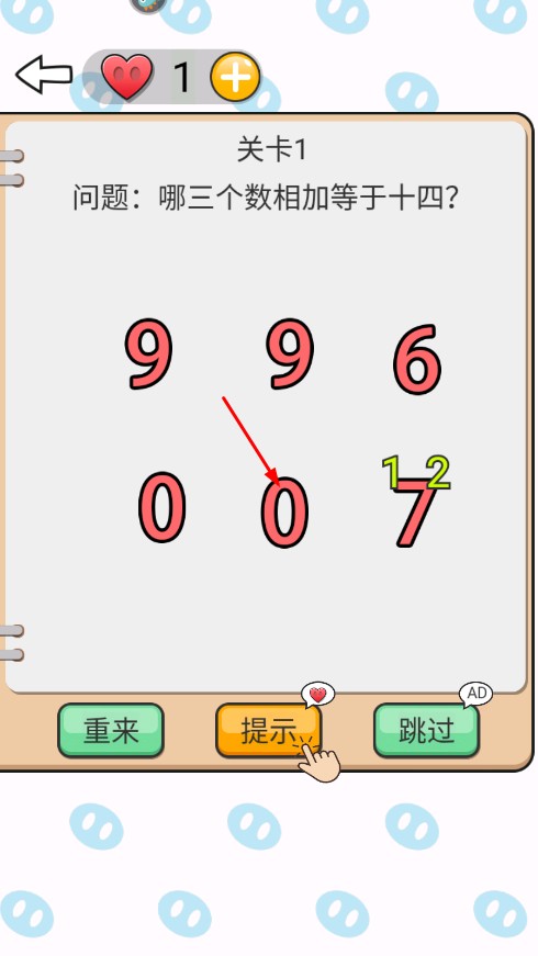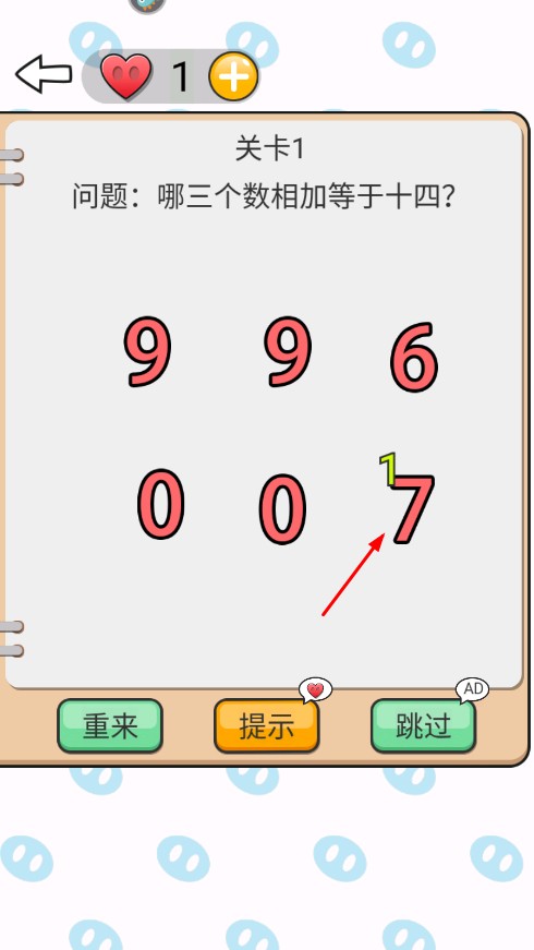 1、点击【开始游戏】按钮,进入游戏第1关。