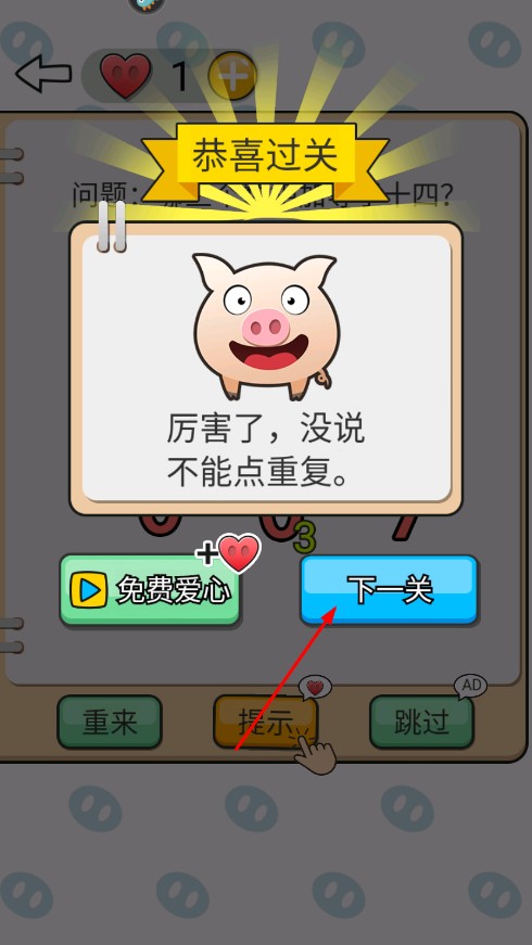 4、关卡通过后,点击【下一关】按钮,继续游戏。
