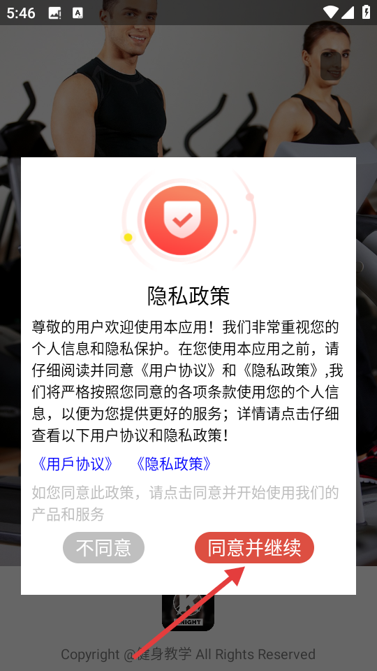 1、在隐私政策弹窗中,点击【同意并继续】按钮,进入主界面。