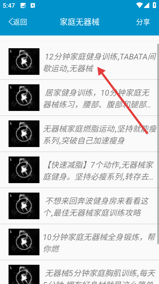 3、在家庭无器械课程列表中,选择目标课程点击进入。