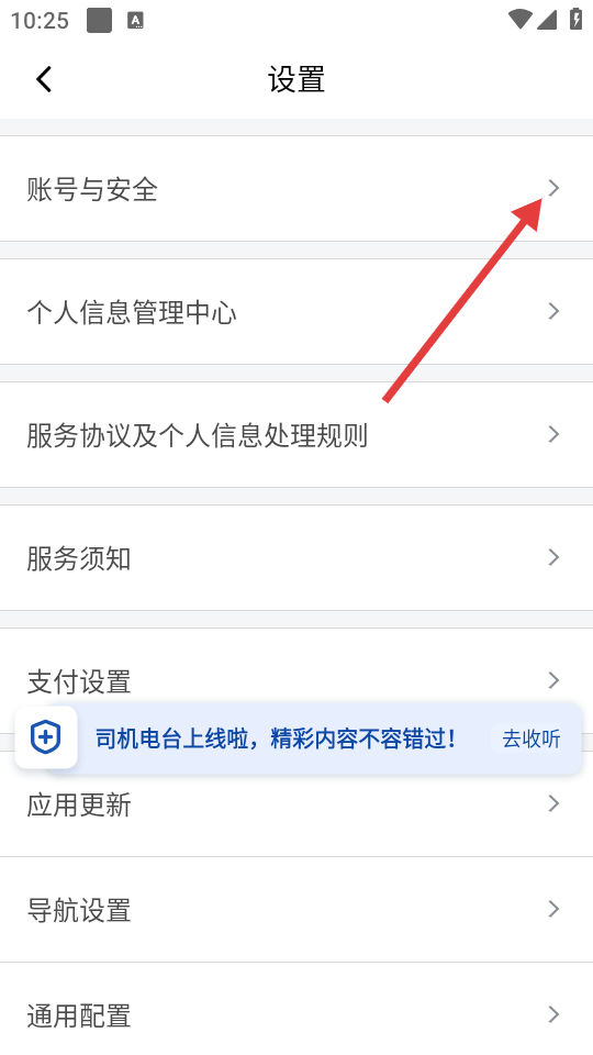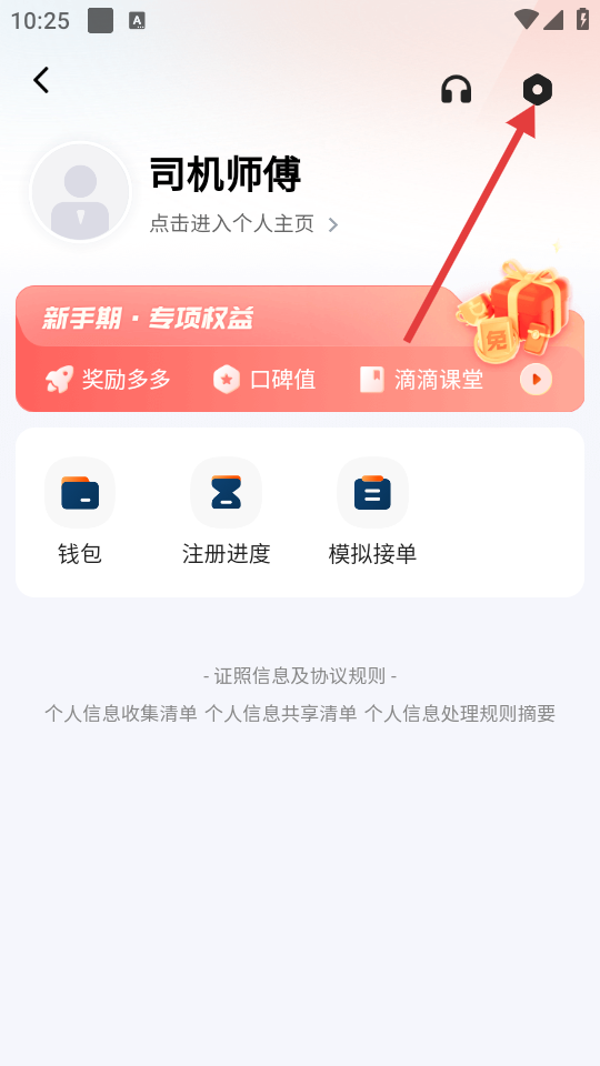 1、在司机个人页面,点击右上角的【设置】图标,进入设置页面。