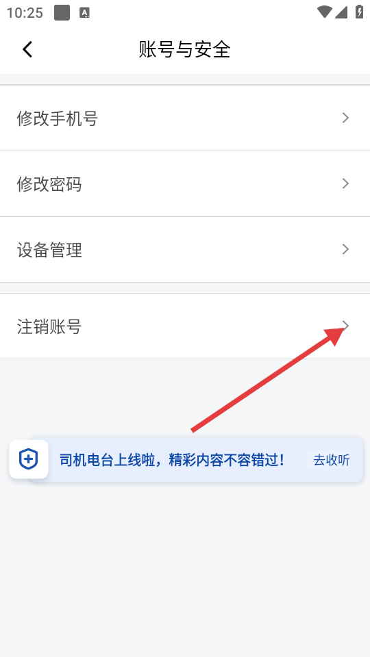3、在账号与安全页面,点击【注销账号】选项,进入账号注销提示页面。