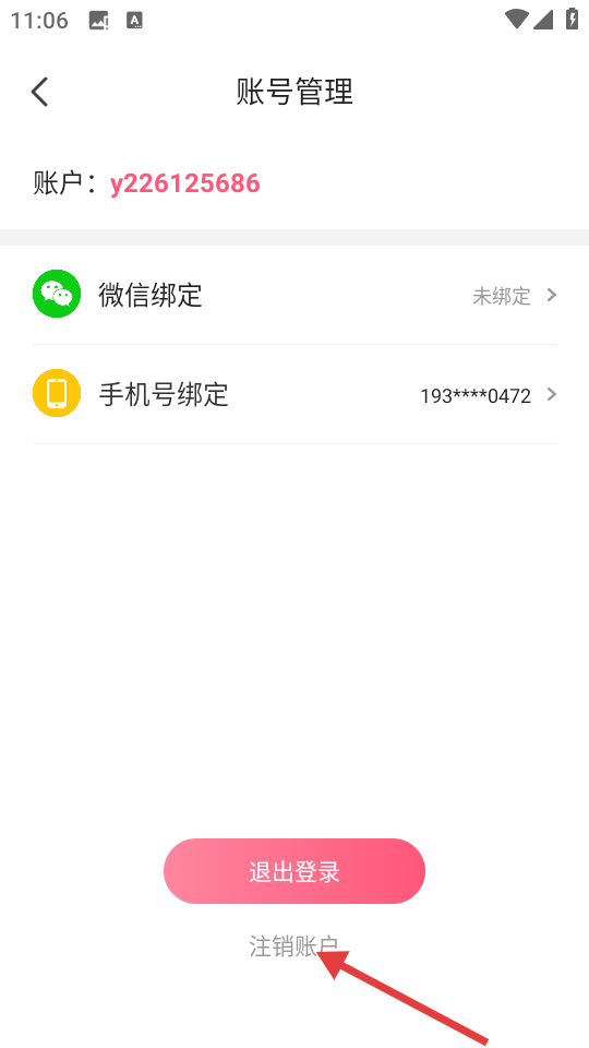 2、在账号管理页面,点击【注销账户】选项,进入注销账号页面。
