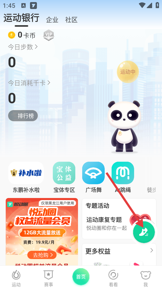 1、在应用首页,点击右侧的运动图标,进入运动选择页面。