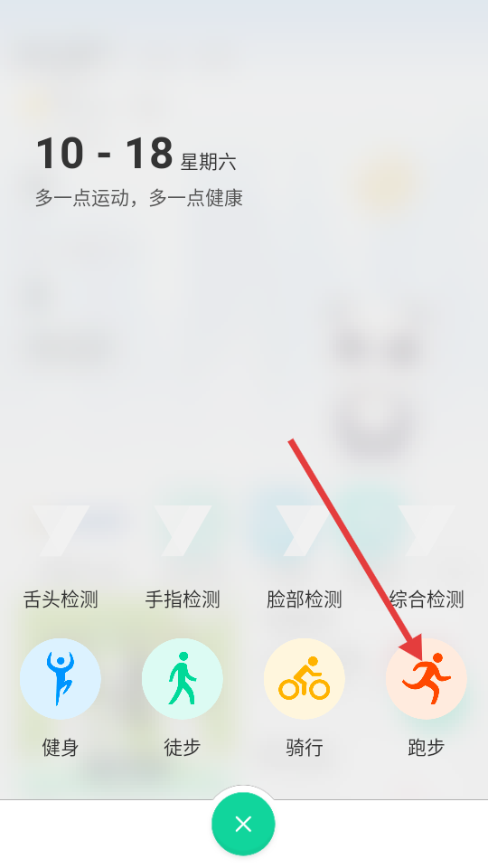 2、在运动选择页面,点击【跑步】选项,进入跑步页面。