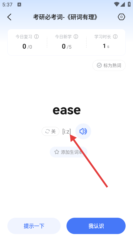 4、在单词学习页面,可查看单词信息,进行考研词汇的学习。