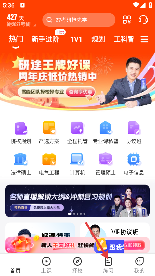 1、在应用首页,点击底部【练习】选项,进入练习页面。