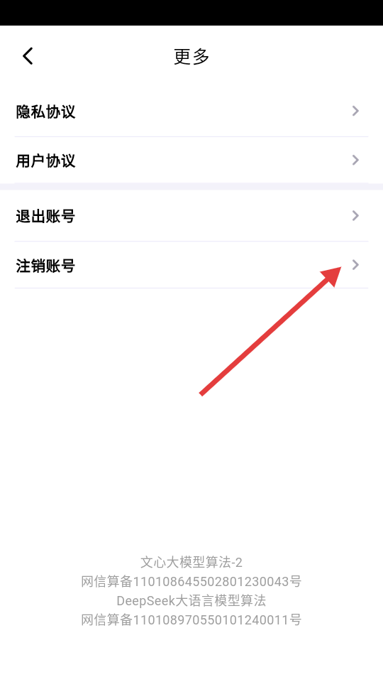 3、在更多设置页面找到【注销账号】选项并点击,进入注销流程。