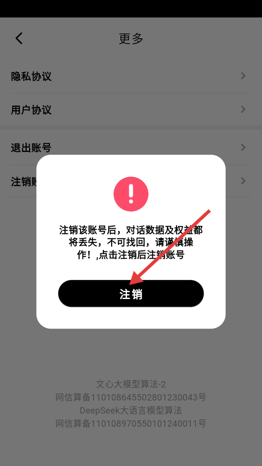 4、在弹出的提示框中点击【注销】按钮,完成账号注销操作。