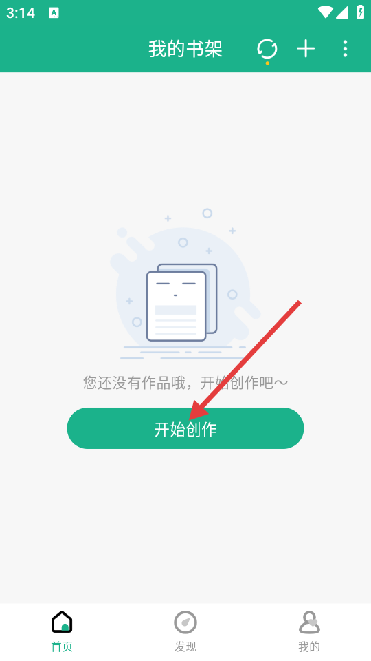 2、在【我的书架】页面点击【开始创作】按钮,进入新建作品流程。