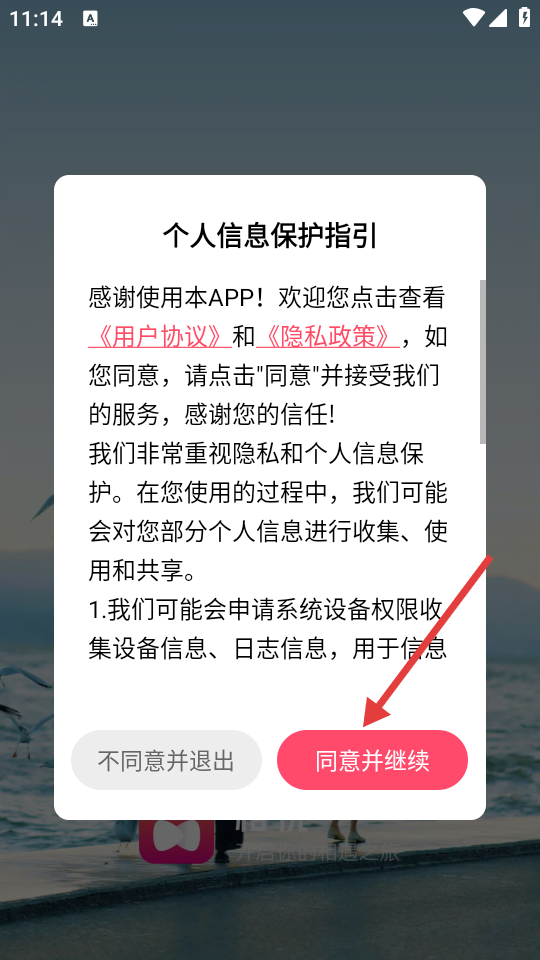 1、在个人信息保护指引页面点击【同意并继续】按钮,进入软件主界面。