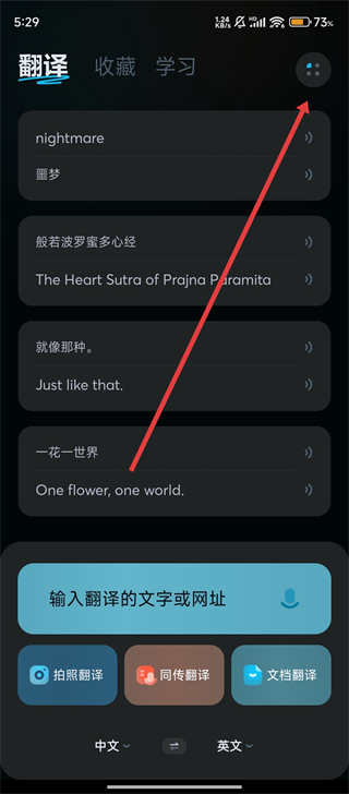1、打开有道翻译官App,点击右上角【四点图标】,进入功能菜单啦。