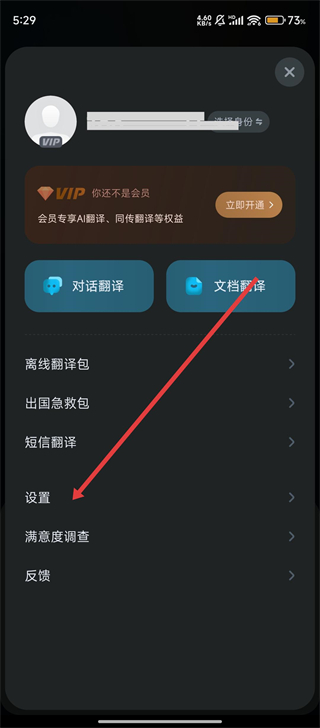 2、在功能菜单中,找到【设置】并点击,进入设置页面,继续推进悬浮窗翻译的开启流程。