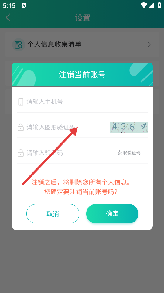 4、在注销当前账号页面,依次输入手机号、图形验证码、验证码后点击【确定】,可完成账号注销操作。