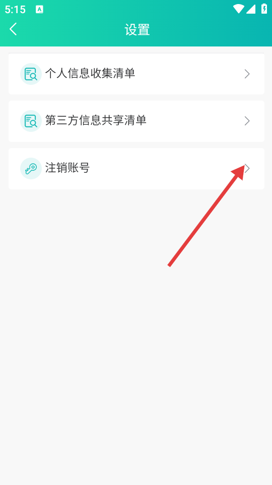 3、在设置页面点击【注销账号】选项,可进入账号注销流程页面。