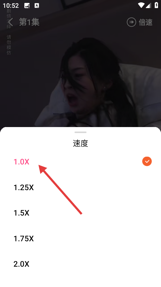 4、在倍速选择菜单中,可选择【1.0X】【1.25X】等不同播放速度,调整短剧播放节奏。