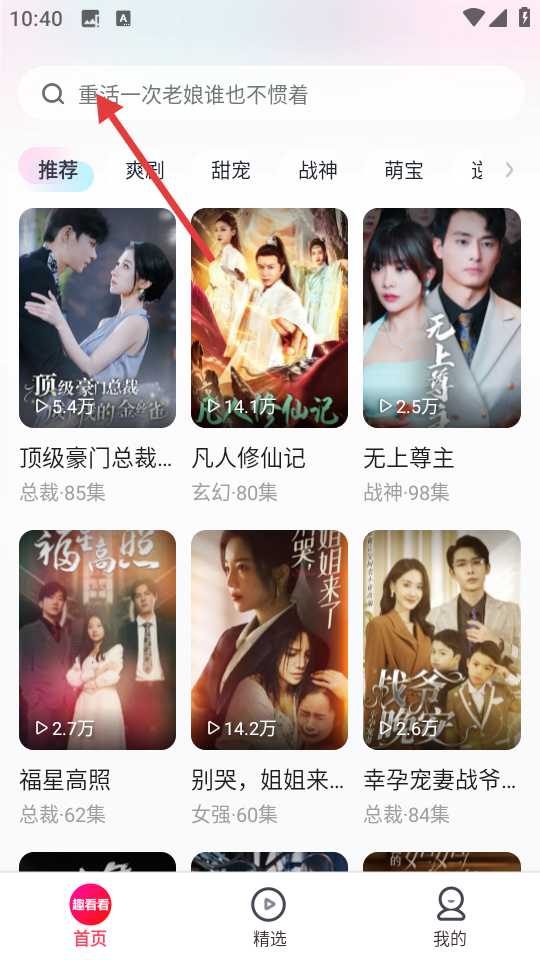 1、在首页搜索框输入短剧名称,可搜索目标短剧。