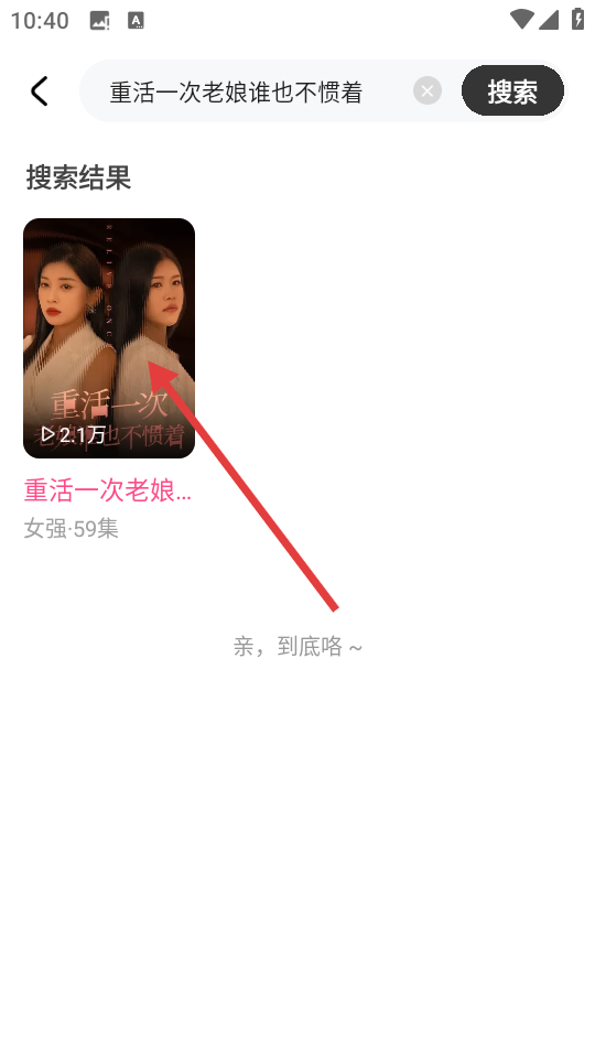 2、在搜索结果页面,点击目标短剧如【重活一次老娘谁也不惯着】,可进入该剧播放页面。