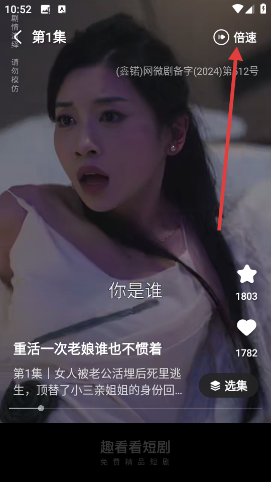 3、在短剧播放页面,点击右上角【倍速】按钮,可打开倍速选择菜单。