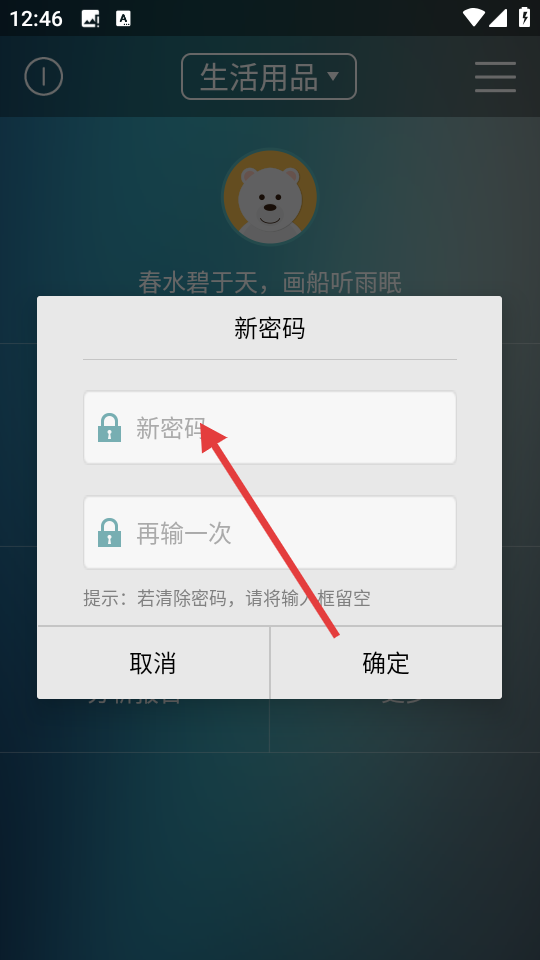 3、在设置界面的子菜单中,点击【设置密码】选项,弹出新密码设置窗口。