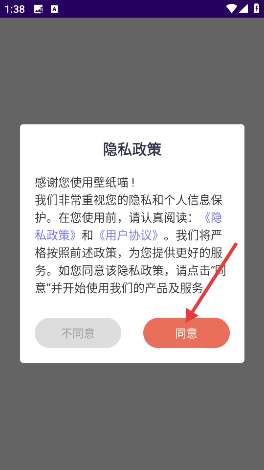 1、在【隐私政策】弹窗中,点击【同意】按钮,以继续使用软件服务。