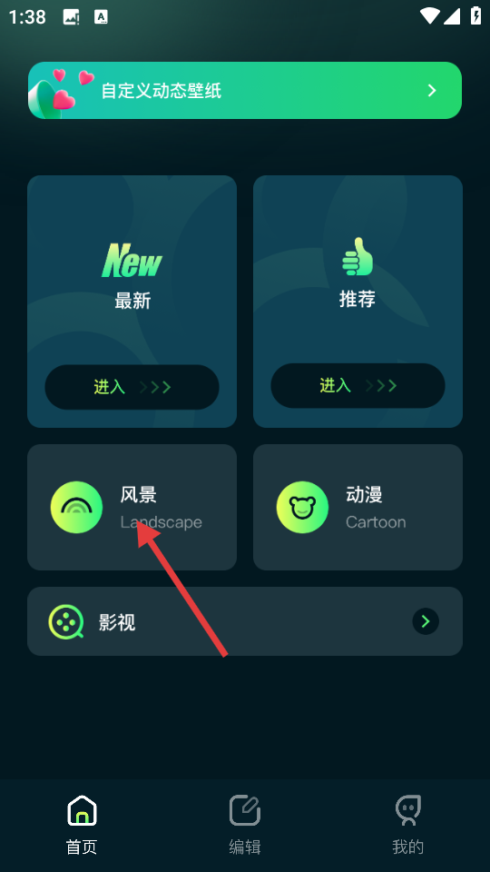 2、在软件首页,点击【风景】分类图标,进入风景壁纸列表页面。