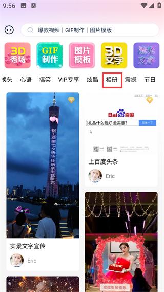 1、进入首页,点击【相册】分类标签,切换到相册模板的展示页面。