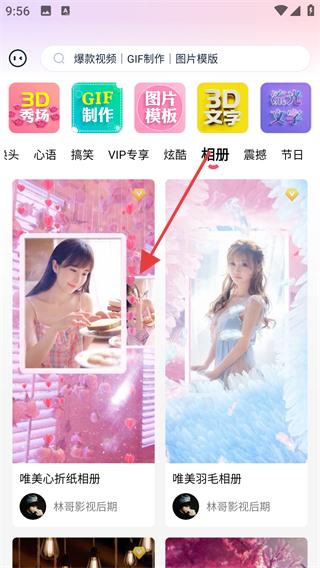 2、在相册模板页,选择目标模板(如【唯美心折纸相册】),进入模板详情页。