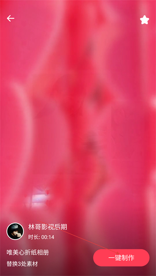 3、在模板详情页,点击【一键制作】按钮,进入相册的视频制作界面。