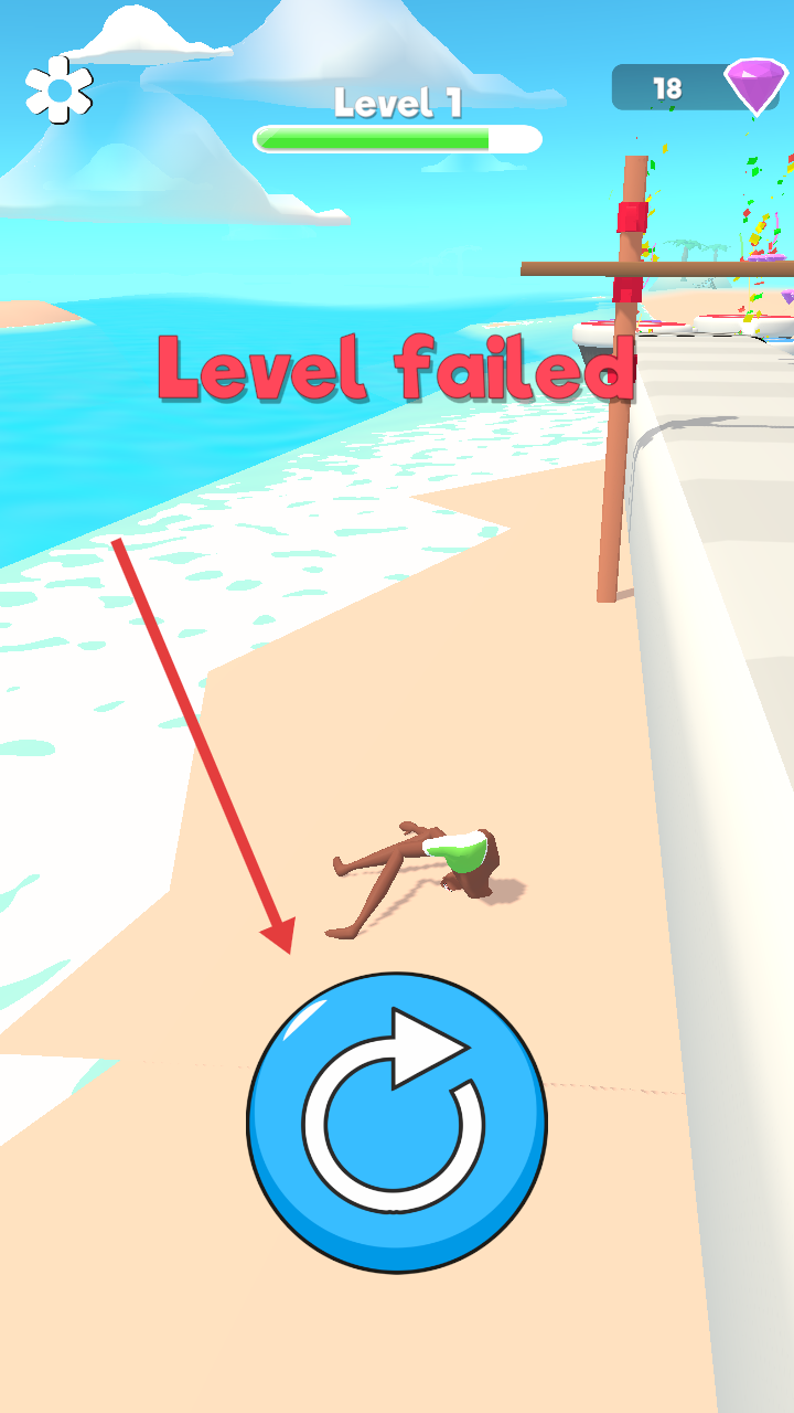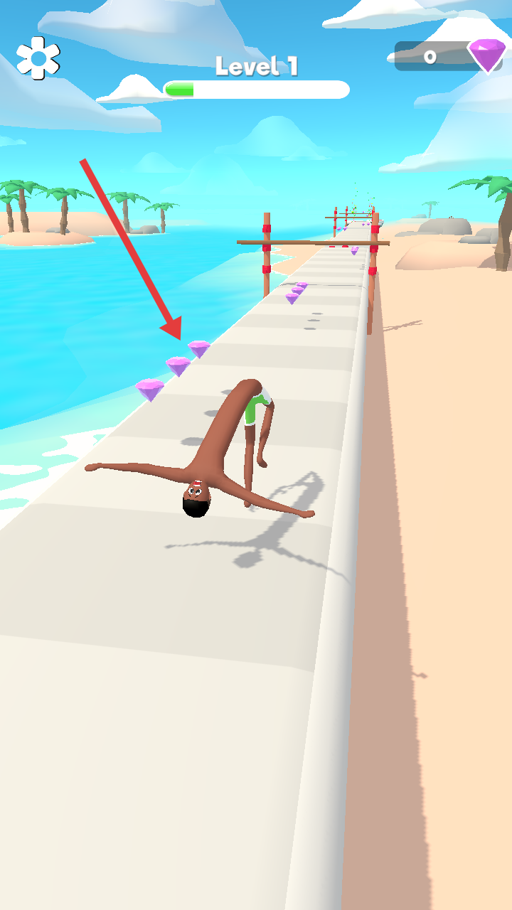1、拖动屏幕控制角色在海滩赛道上移动,收集紫色钻石,开始Level1的挑战。