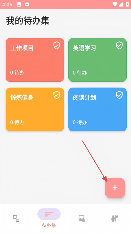 2、在“我的待办集”页面,点击右下角粉色【+】按钮,弹出“添加待办集”弹窗。