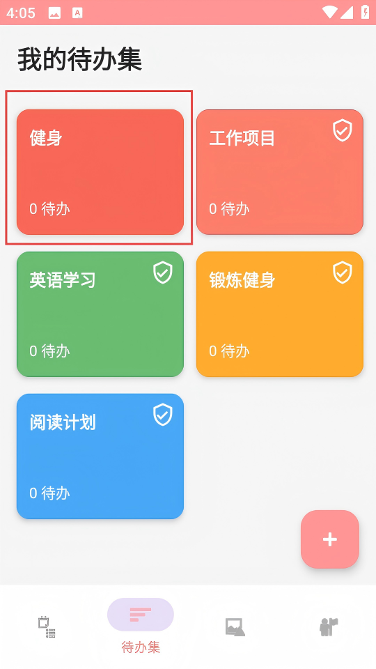 4、保存后,“我的待办集”列表会显示新增的待办集(如【健身】),可继续添加该分类下的待办事项。