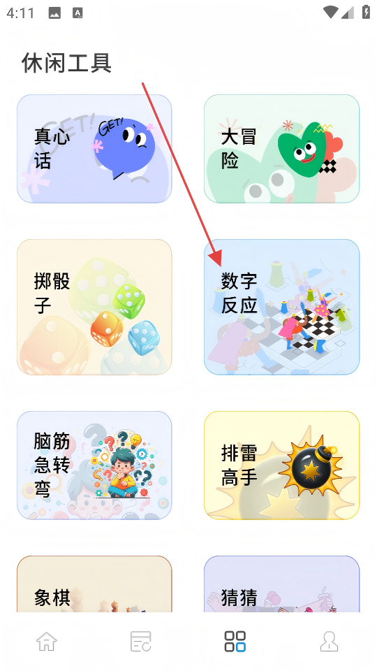 1、在【休闲工具】板块中,点击【数字反应】选项,进入专注力训练相关页面。