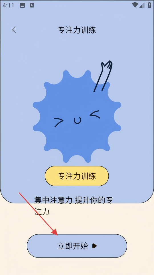 2、进入专注力训练页面后,点击【立即开始】按钮,进入训练模式选择界面。