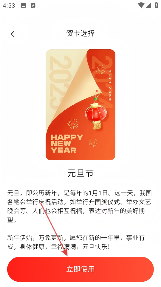 3、进入贺卡选择详情页,点击【立即使用】,进入贺卡制作页面。