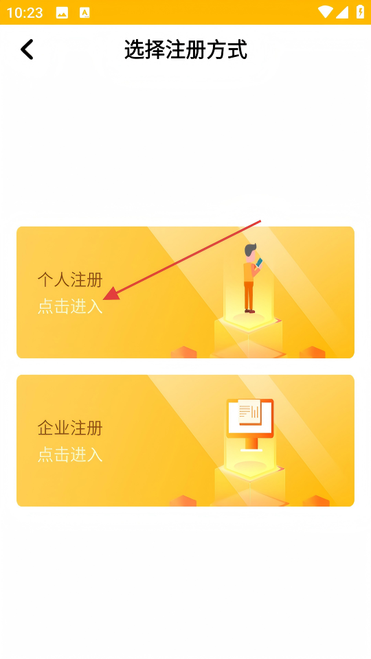 3、在“选择注册方式”页面,点击【个人注册】,进入页面。
