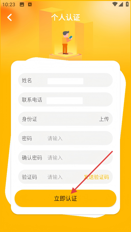 4、在“个人认证”页面,点击【立即认证】,完成个人认证,即可进行砂石购买等后续操作。
