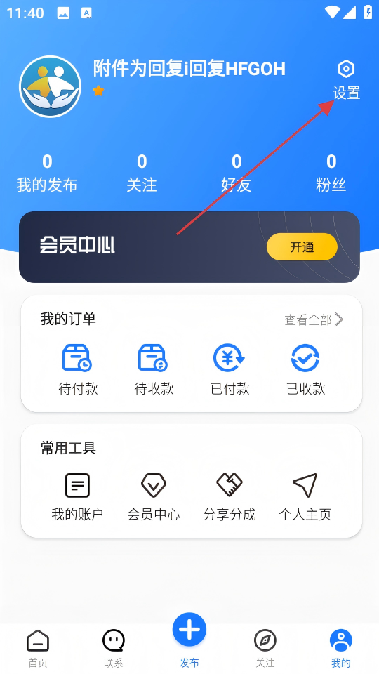 2、在个人中心页面,点击右上角的【设置】按钮,进入设置页面。