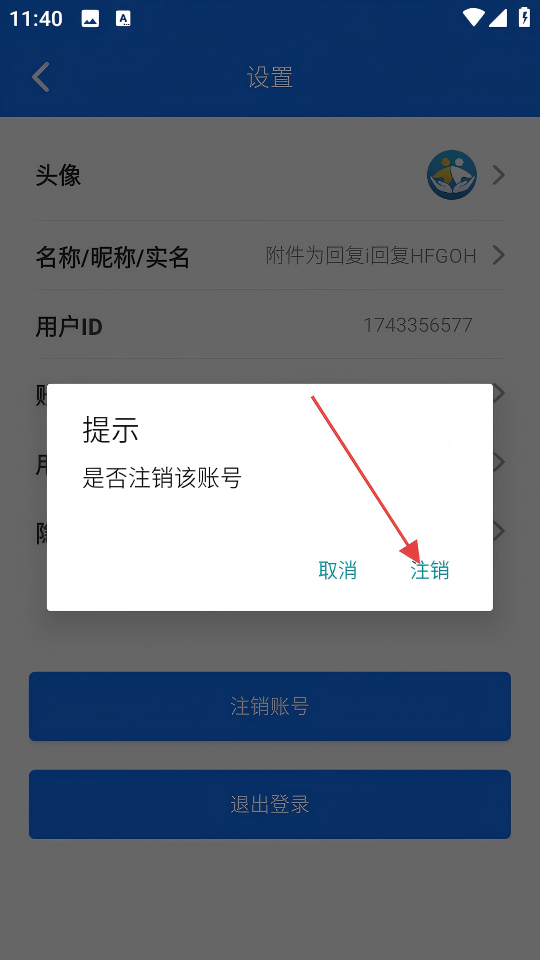 4、在提示弹窗中,点击【注销】按钮,即可完成账号注销操作。