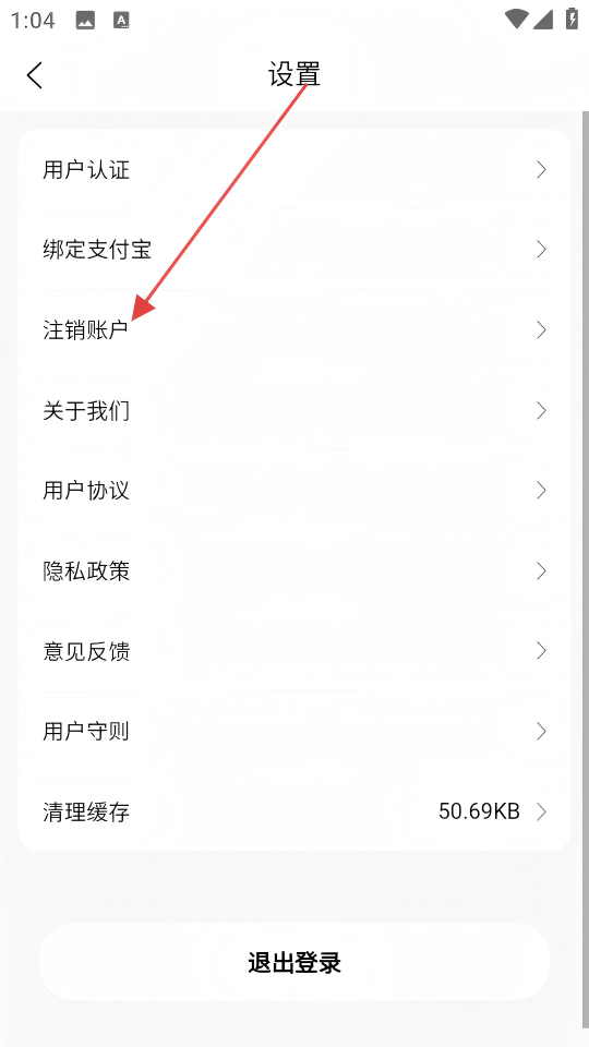 3、在设置页面里,点击【注销账户】选项,进入账户注销操作页面。