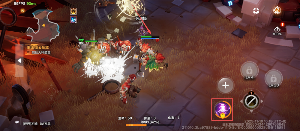 1、战斗时关注【生命】数值,自身状态不佳时,点击右下方紫色的回复按键,为自己增加血量。