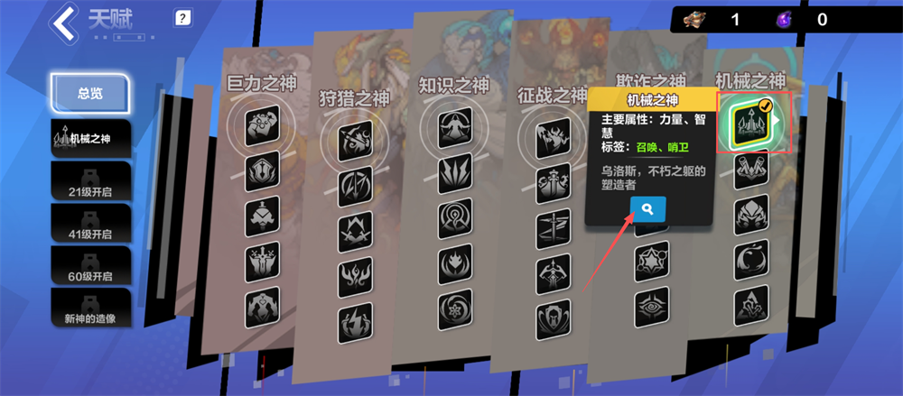 3、在天赋总览界面,选择【机械之神】天赋树,点击【查看】按键进入详情页。