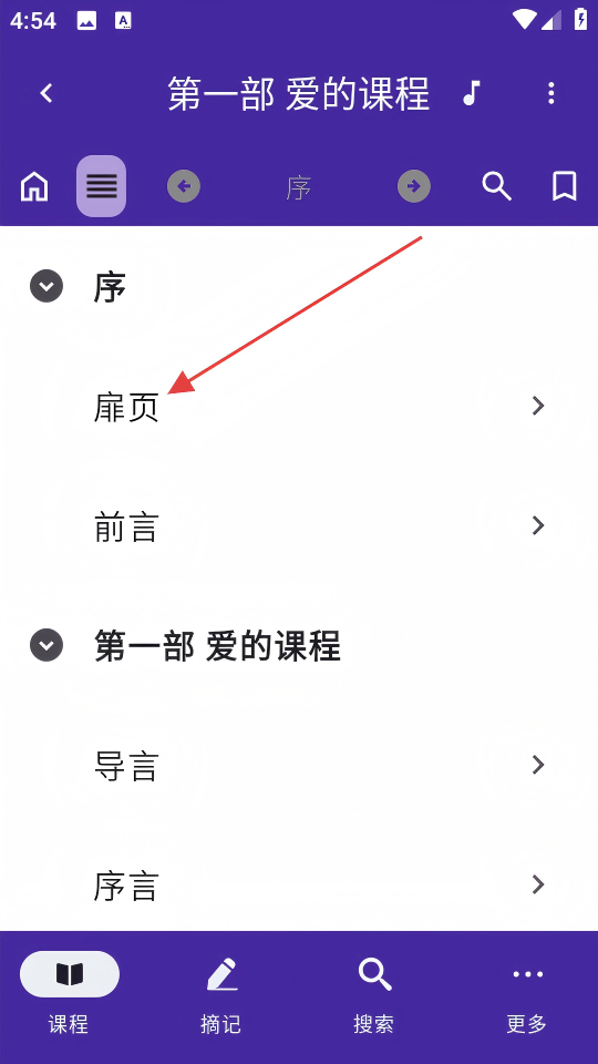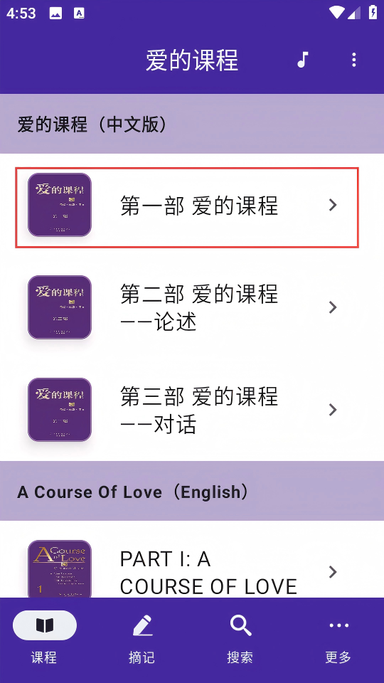 1、在“爱的课程”列表页面,点击【第一部-爱的课程】,进入该课程的详情页面。