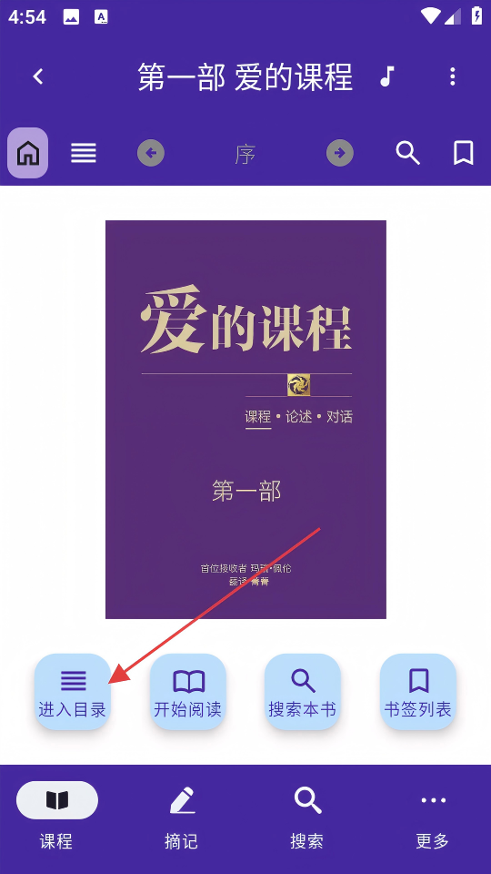 2、在“第一部-爱的课程”详情页面,点击【进入目录】,展开课程目录。