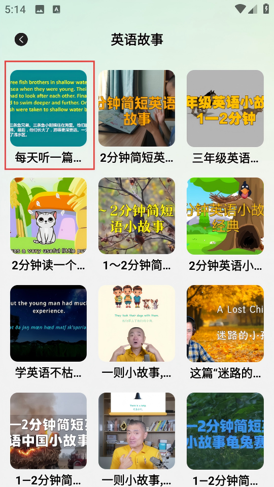 3、在英语故事列表里,选择“每天听一篇英文小故事”类的故事,进入故事收听页面。