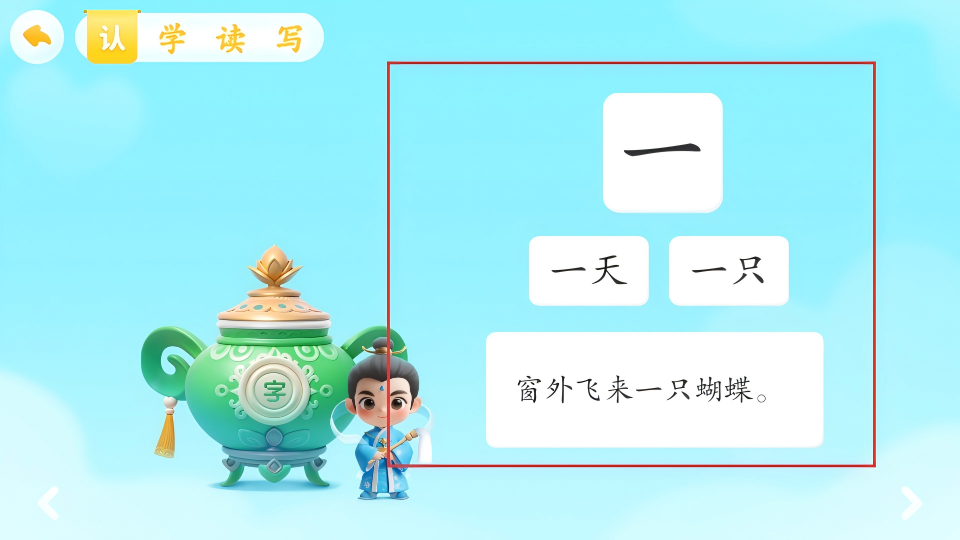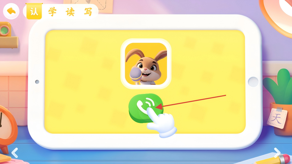 3、在学习界面,点击绿色通话按钮,触发“认学读写”相关互动。
