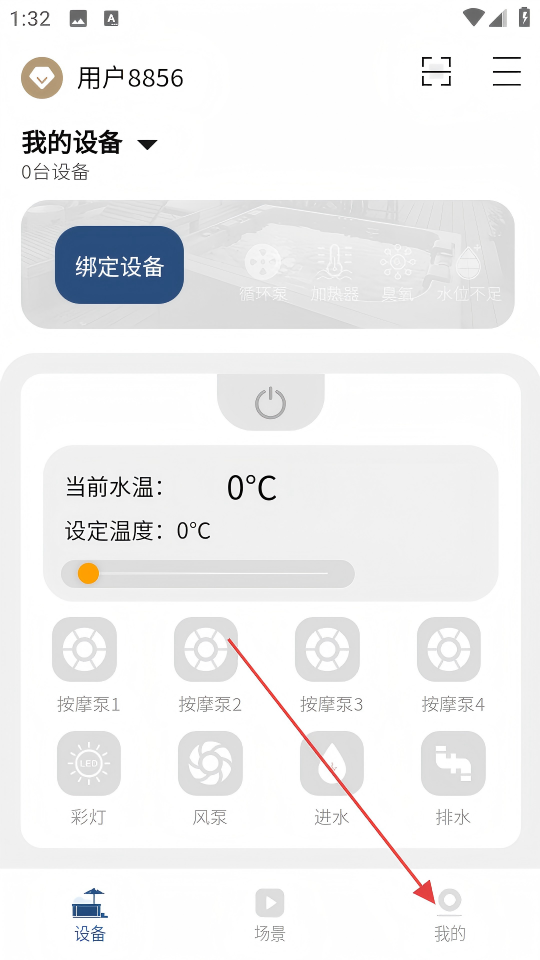 2、在设备页面,点击底部【我的】,进入个人页面。