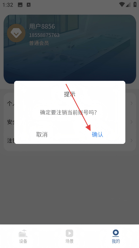 4、在提示框中,点击【确认】,完成账号注销操作。