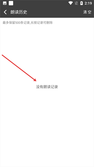4、完成清空操作后,朗读历史页面会显示“没有朗读记录”,代表所有朗读记录已被成功清除。